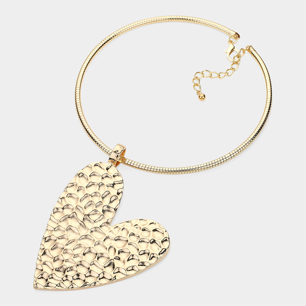 Metal Heart Locket Pendant Paperclip Chain Necklace
