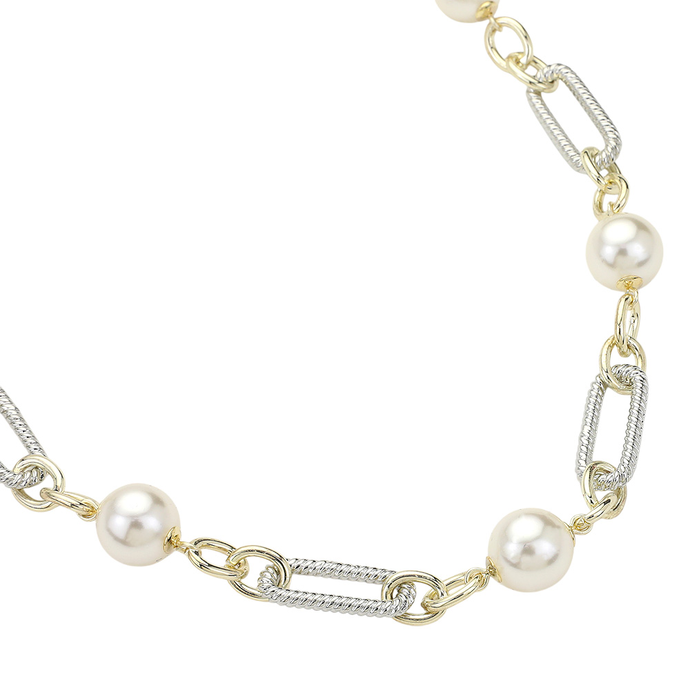 14K Gold Plated Two Tone Chain Pearl Link Toggle Necklace