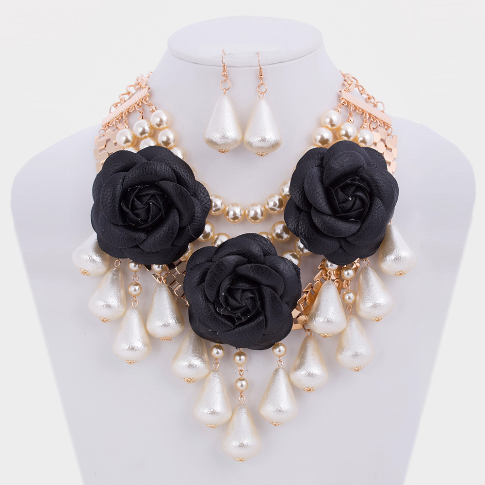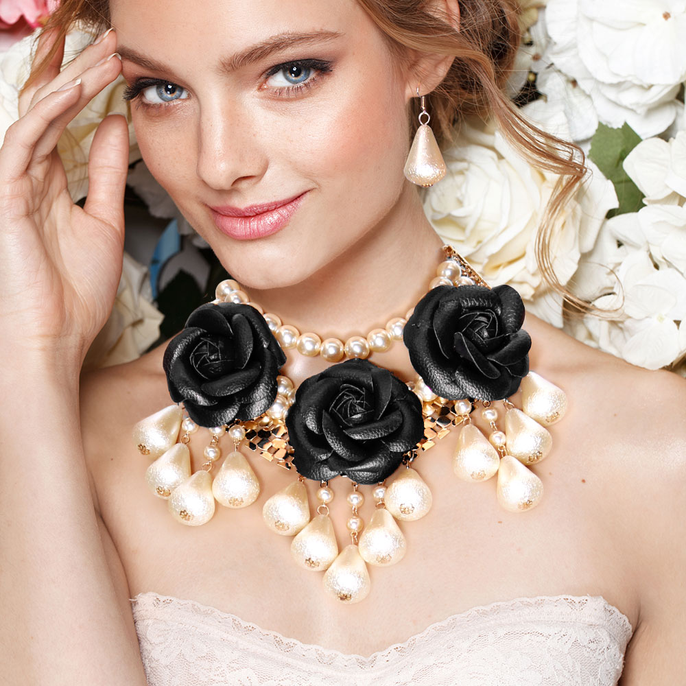 Teardrop Stone Leaf Cluster Vine Statement Evening Necklace
