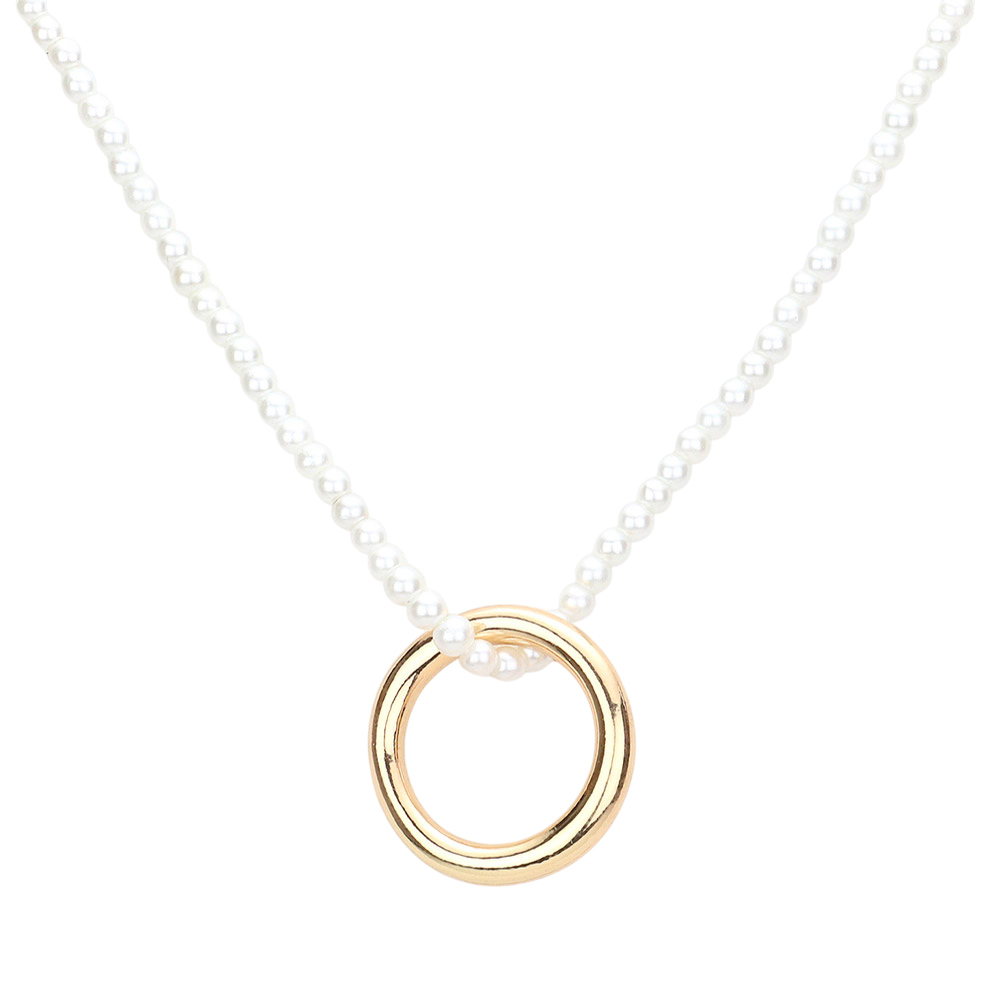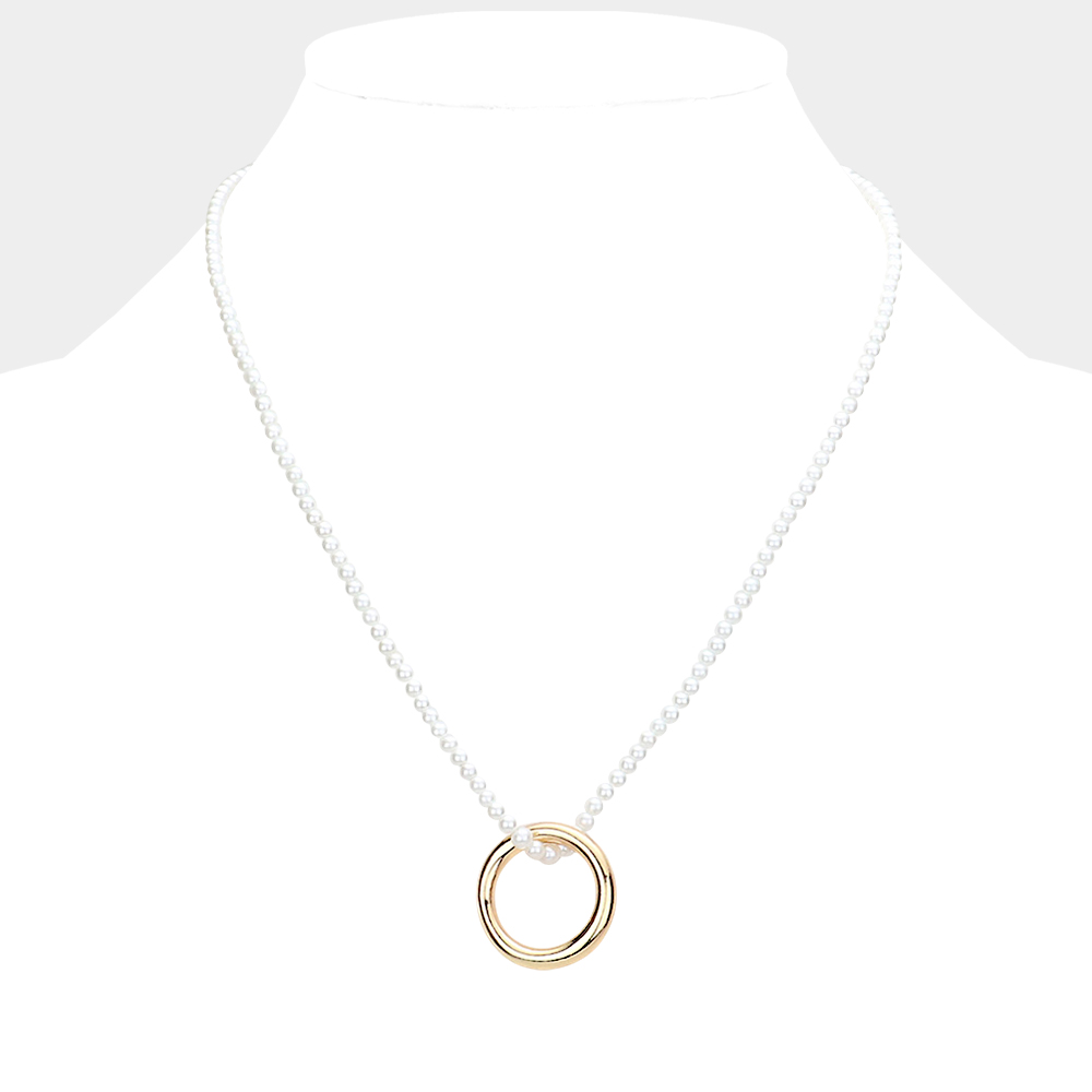 Open Metal Circle Pendant Pearl Necklace