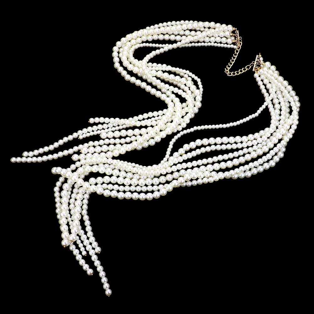 Geometric Crystal Rhinestone Detail Multi-Strand Pearl Necklace