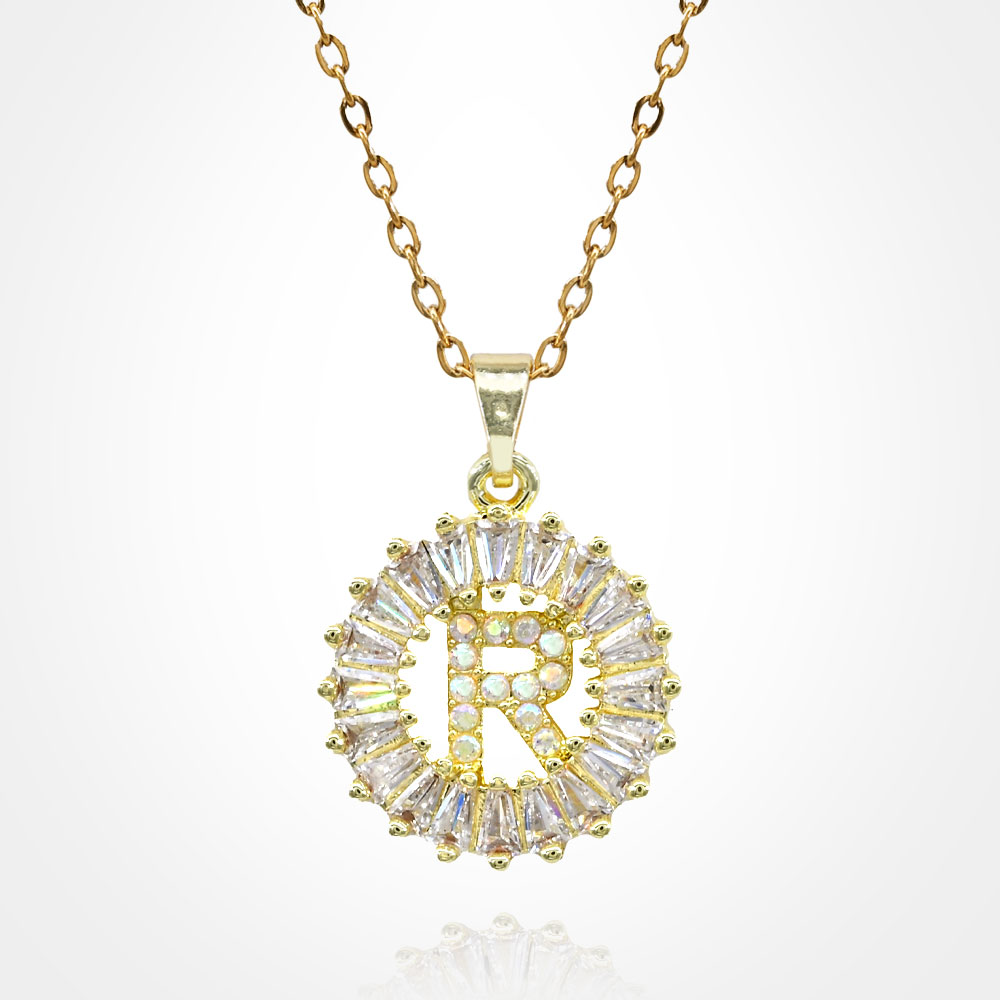 -R- Stainless Steel CZ Stone Embellished Round Initial Monogram Pendant Necklace -R- Stainless Steel CZ Stone Embellished Round Initial Monogram Pendant Necklace -R- Stainless Steel CZ Stone Embellished Round Initial Monogram Pendant Necklace
