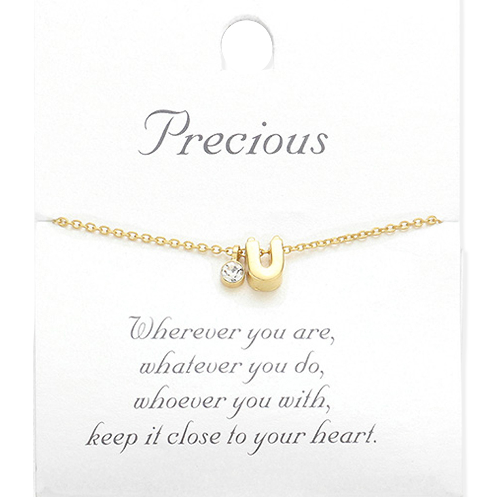 -U- Gold Dipped Metal Initial Monogram Rhinestone Oval Link Pendant Necklace