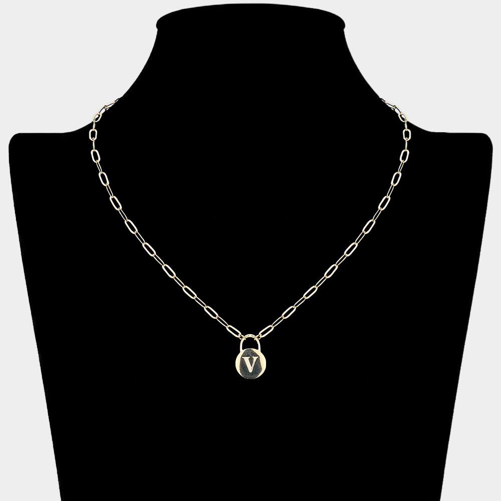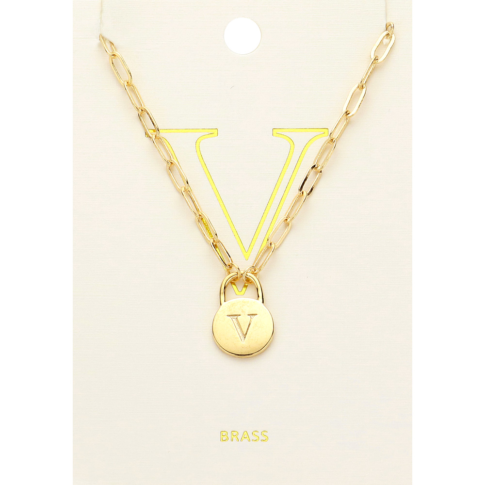 -N- Brass Metal Initial Monogram Lock Pendant Necklace