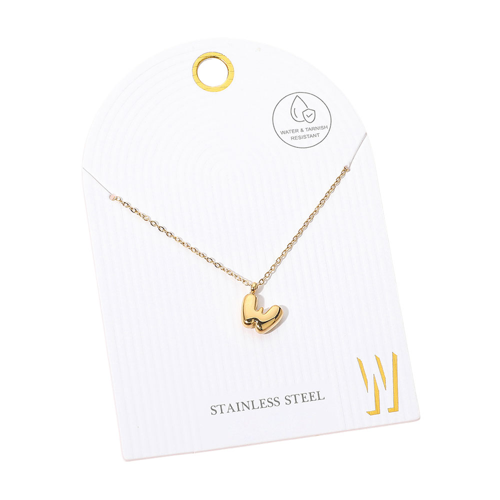 Details • Necklace Size : 18" L • Pendant Size : 0.3" L • Chic stainless steel necklace featuring a minimalist initial monogram pendant. Designed for everyday wear, this water and tarnish resistant piece adds a personal touch and effortless elegance to any outfit. • Stainless Steel