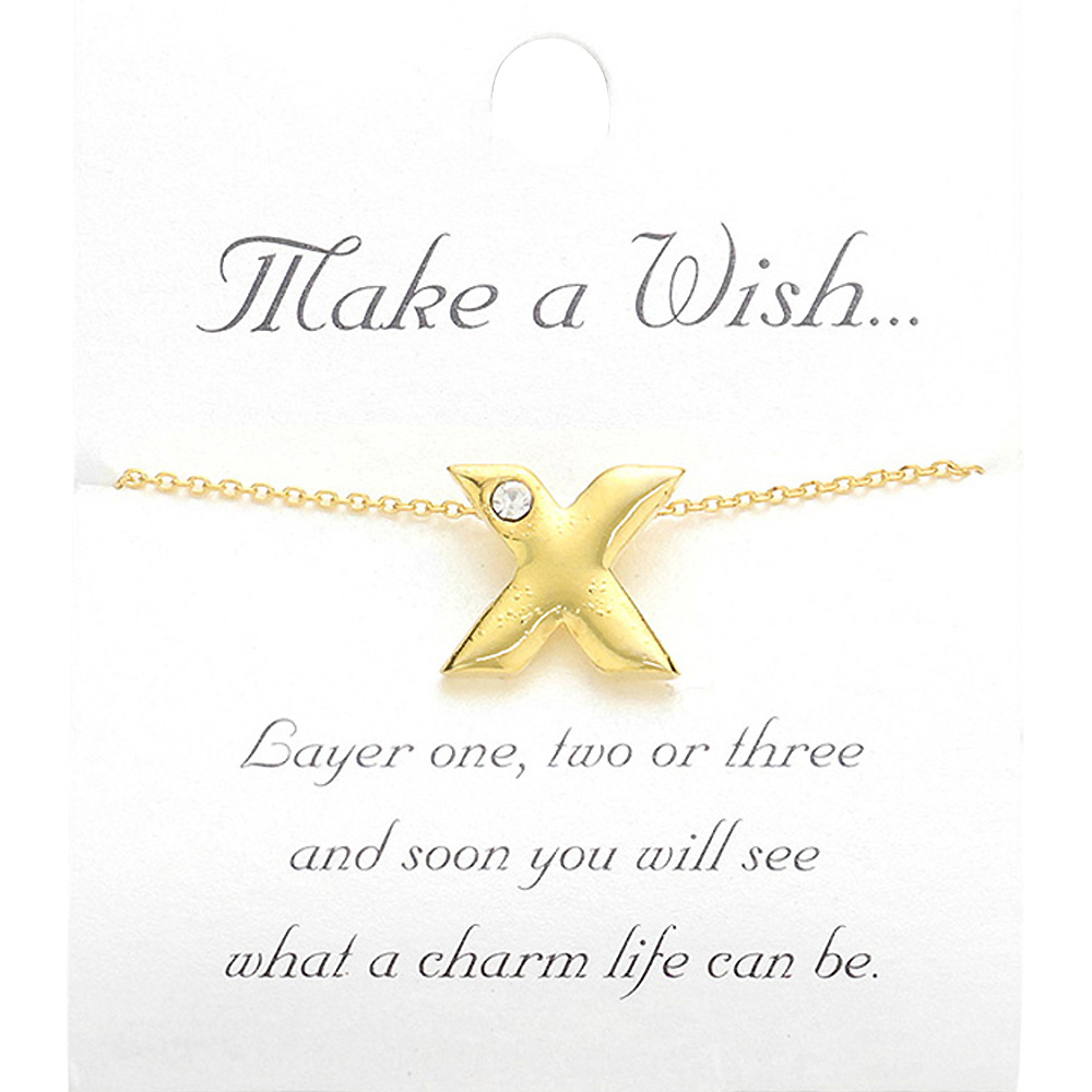 -I- Rhinestone Initial Monogram Pendant Brass Chain Necklace