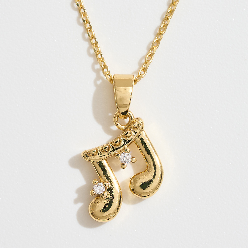 Details • Necklace Size : 16" + 2" L • Pendant Size : 0.4" X 0.75" • Celebrate your love for music with this elegant musical notes pendant necklace. Featuring a playful double-note design accented with sparkling details, it makes a meaningful accessory for musicians, singers, or music enthusiasts who want to showcase their passion in style. • CZ Cubic Zirconia • Gold Dipped • Made In Korea