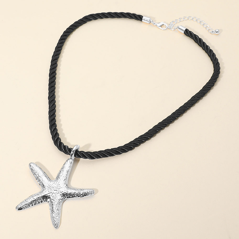 Details • Necklace Size : 20" + 3.5" L • Pendant Size : 2.3" X 3" • Coastal inspired necklace featuring a textured starfish pendant on a twisted cord. A lightweight, beach-themed accessory perfect for everyday wear, layering, or gifting. Adds a touch of seaside charm to any outfit. • Lead and Nickel Compliant • Made In Korea • Gold Dipped