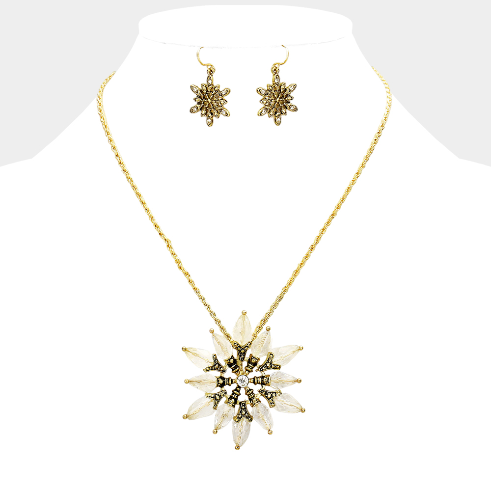Oversized Teardrop Glass Stone Pendant Bling Studded Chunky Chain Necklace
