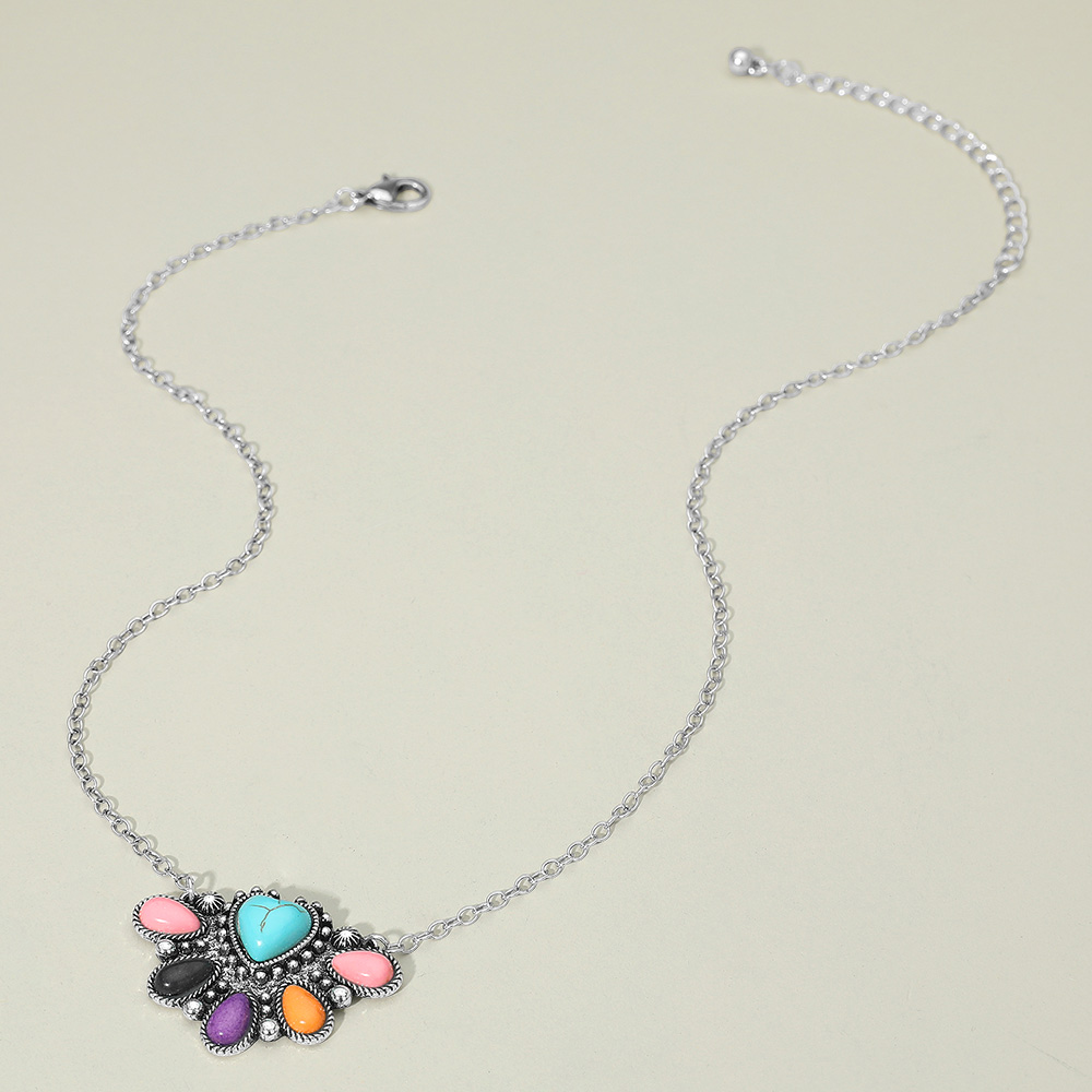 Boho Southwestern Multi Color Stone Fan Pendant Necklace Boho Southwestern Multi Color Stone Fan Pendant Necklace Boho Southwestern Multi Color Stone Fan Pendant Necklace