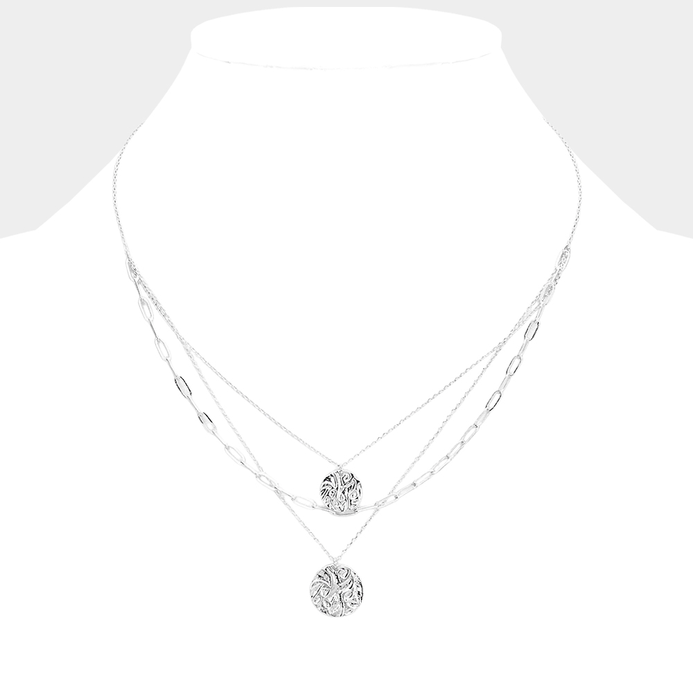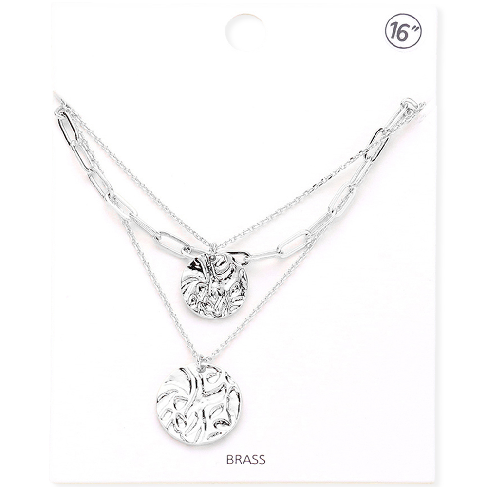 Brass Metal Crushed Metal Disc Pendant Triple Layered Necklace