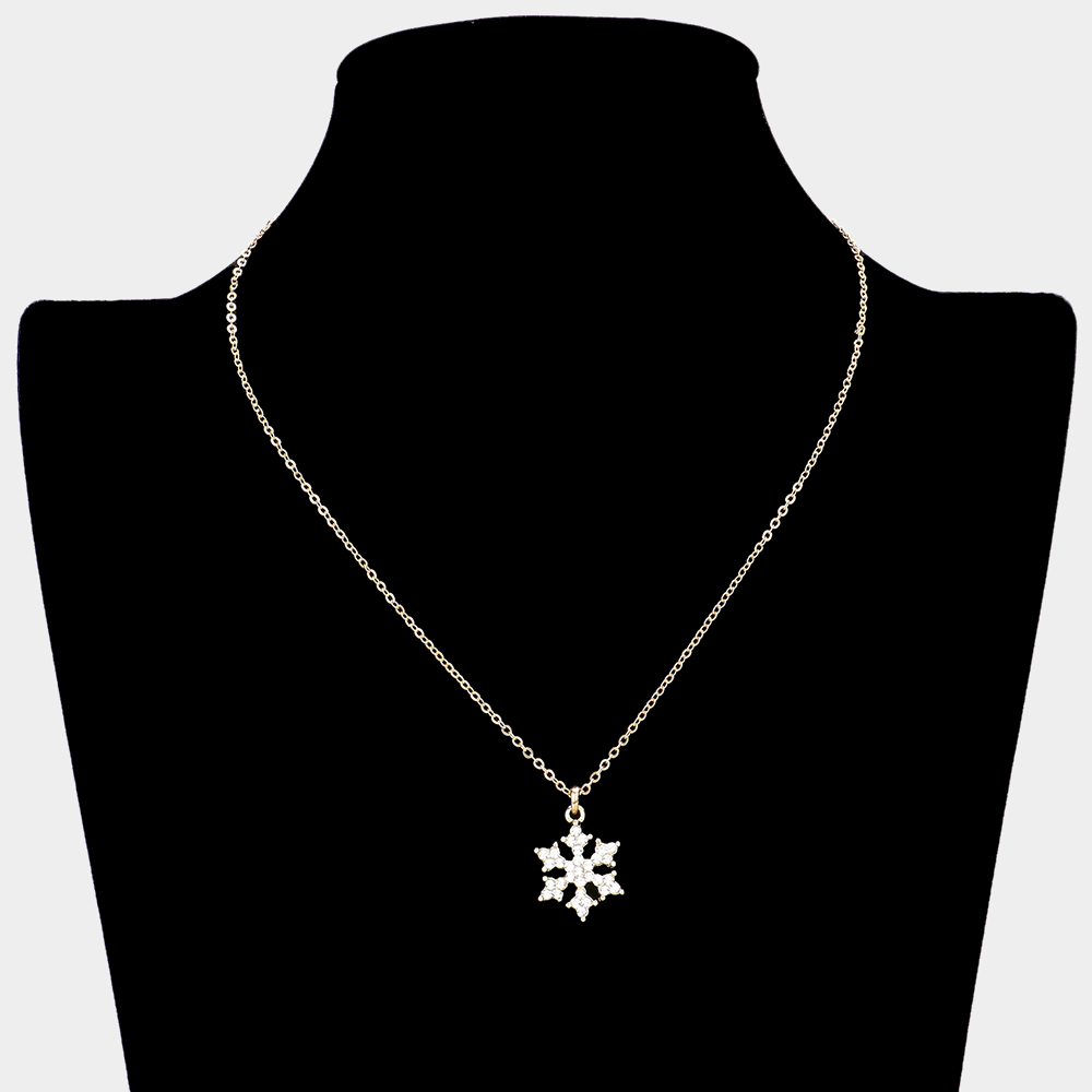 Details • Necklace Size : 16" + 2" L • Pendant Size : 0.6" X 0.75" • This snowflake pendant necklace shines with sparkling accents, capturing the beauty of winter in a timeless design. A delicate and versatile piece, perfect for adding a touch of seasonal charm to everyday outfits or gifting as a symbol of uniqueness. • Lead and Nickel Compliant