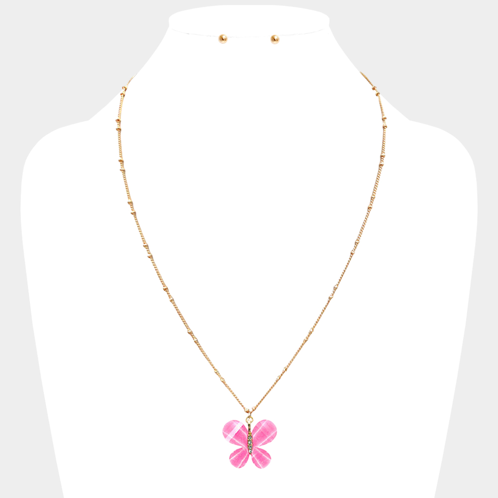 Butterfly Pendant Faceted Beaded Necklace
