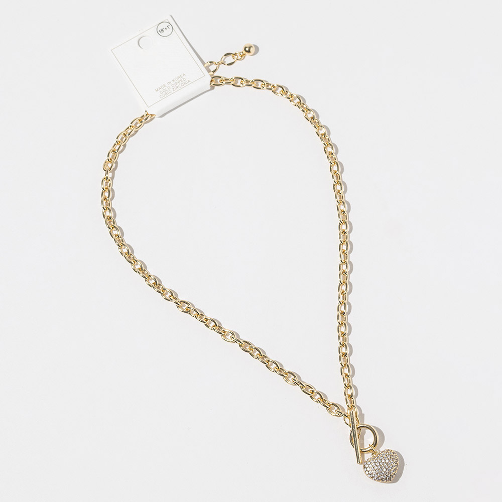 Details • Necklace Size : 18" + 1" L • Pendant Size : 0.7" X 0.6" • Add a chic touch to your look with this textured heart toggle pendant necklace. Featuring a sparkling heart charm on a bold link chain, it combines modern style with timeless elegance. Perfect for everyday wear or special occasions, it layers beautifully and makes a thoughtful gift for any jewelry lover. • CZ Cubic Zirconia • Gold Dipped • Lead and Nickel Compliant • Made In Korea