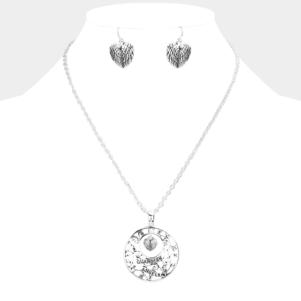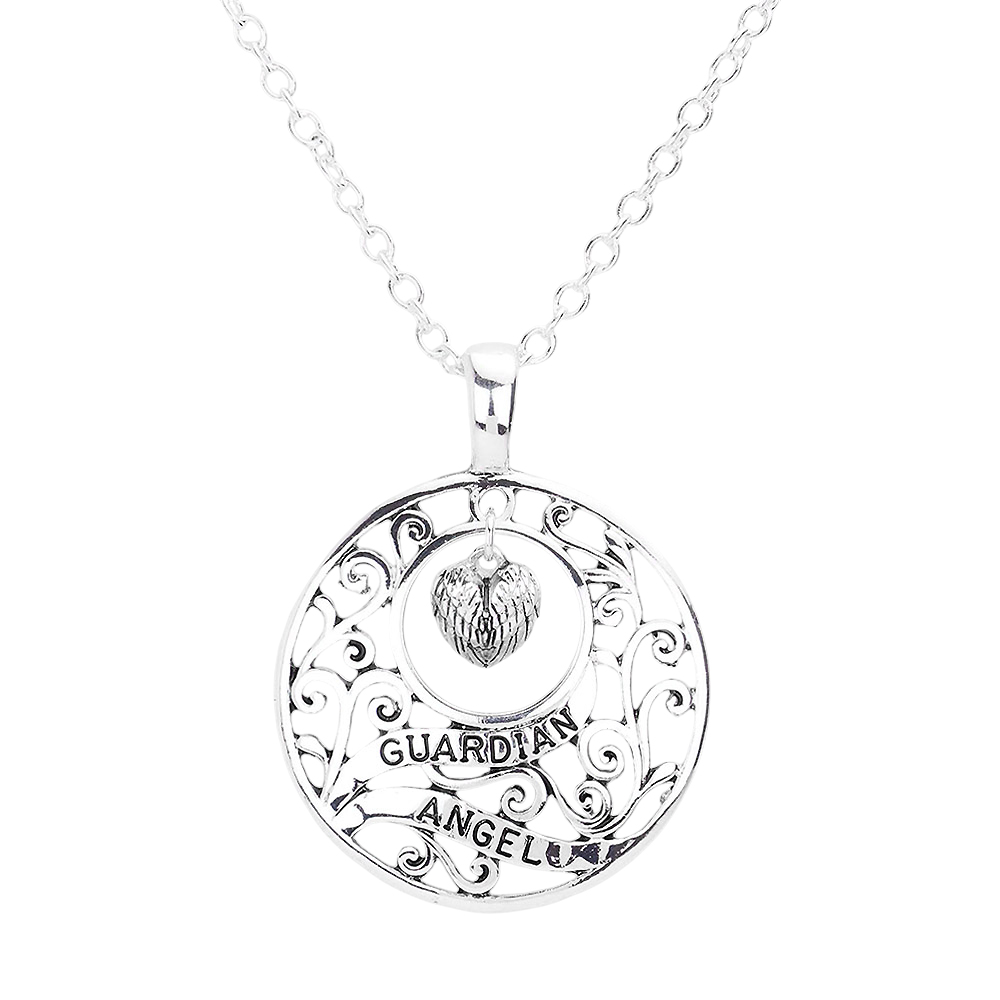 Antique Metal Abalone Open Teardrop Pendant Necklace