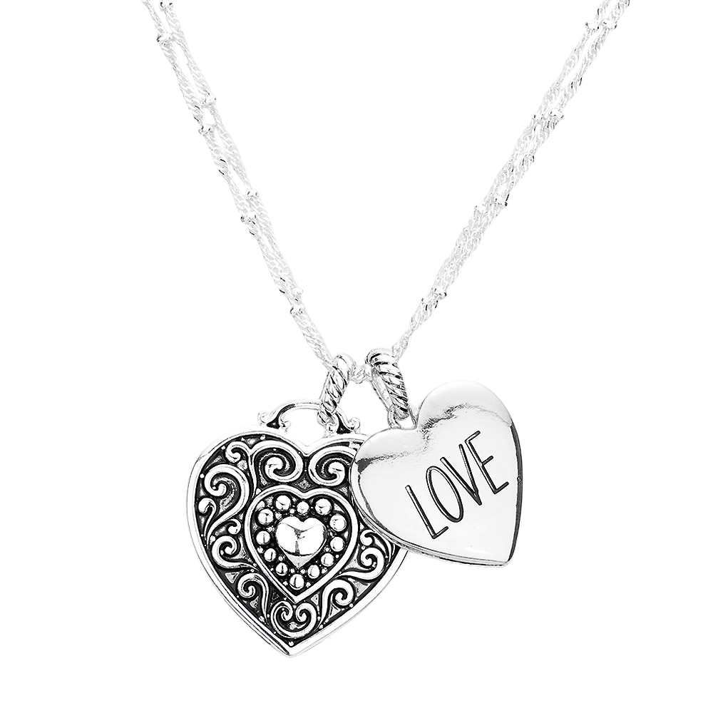 Metal Heart Teardrop Natural Stone Link Pendant Long Necklace