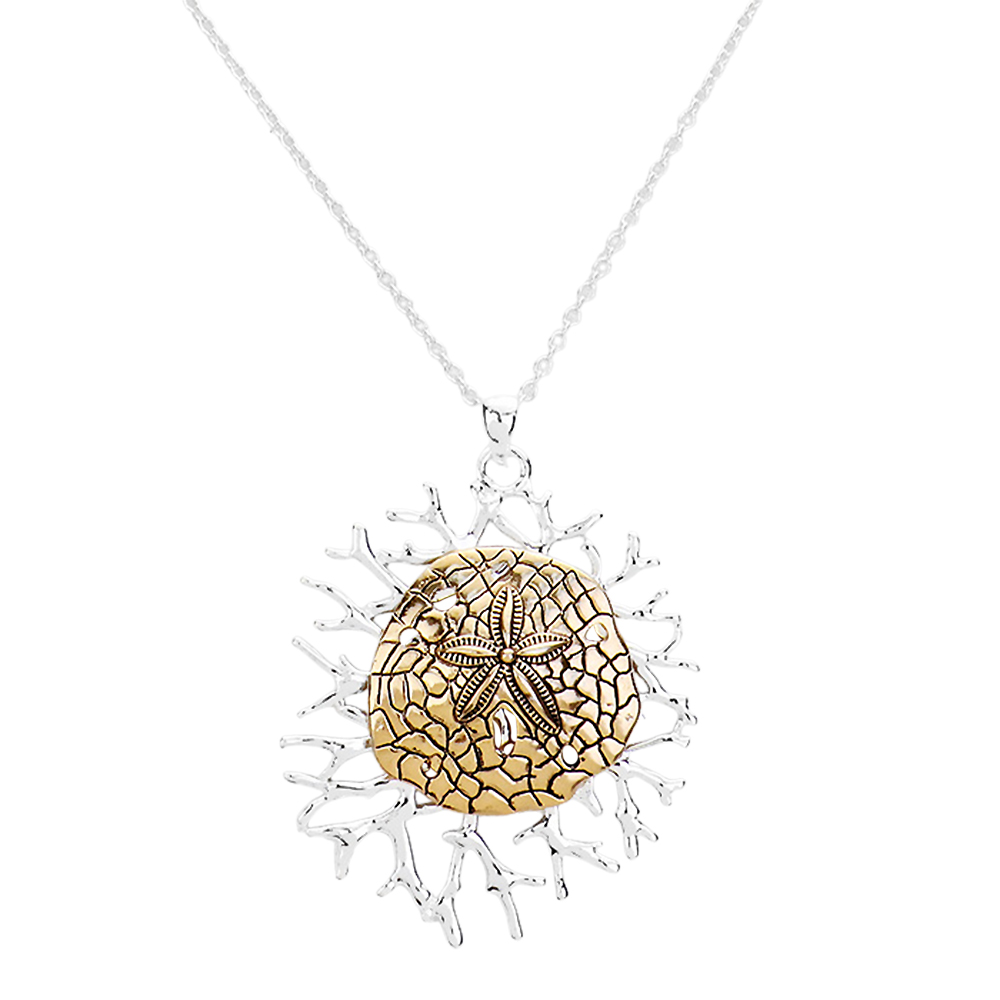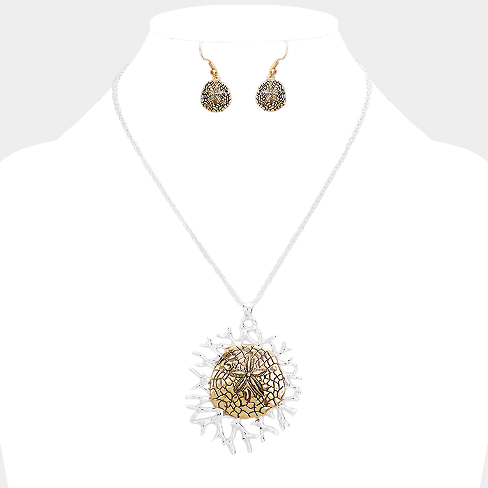 Two Tone Textured Metal Sand Dollar Pointed Starfish Embossed Heart Dangle Earrings