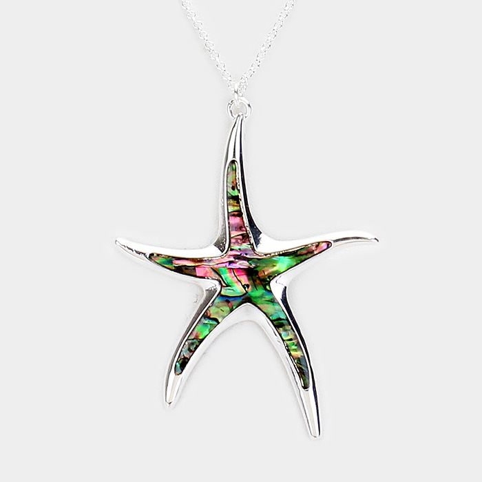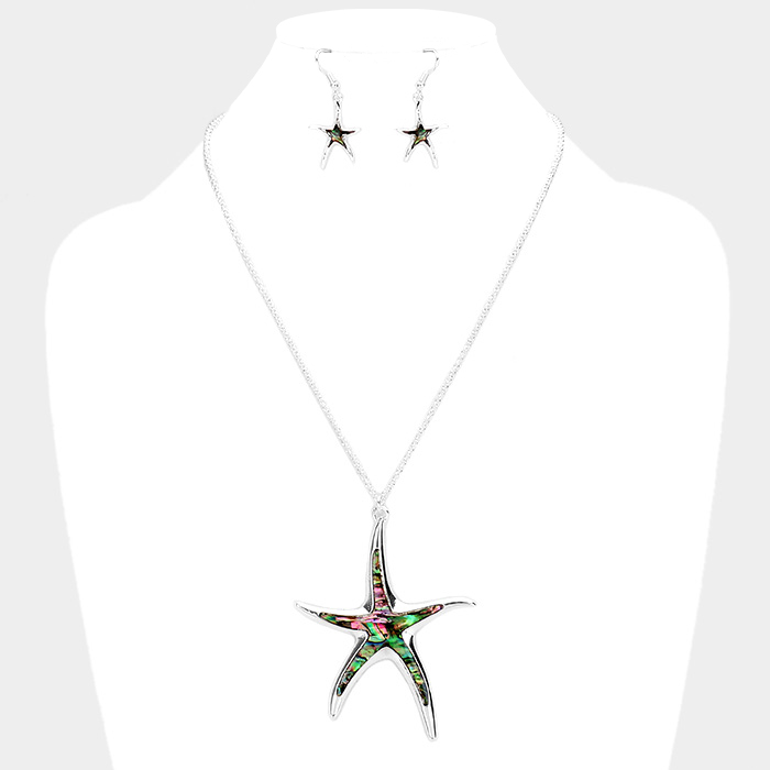 Stone Pointed Abalone Sea Glass Starfish Dangle Earrings