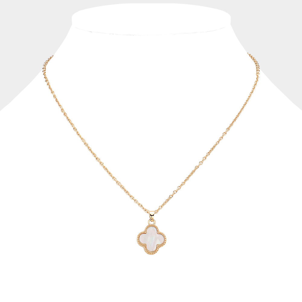 Mother Of Pearl Quatrefoil Pendant Necklace