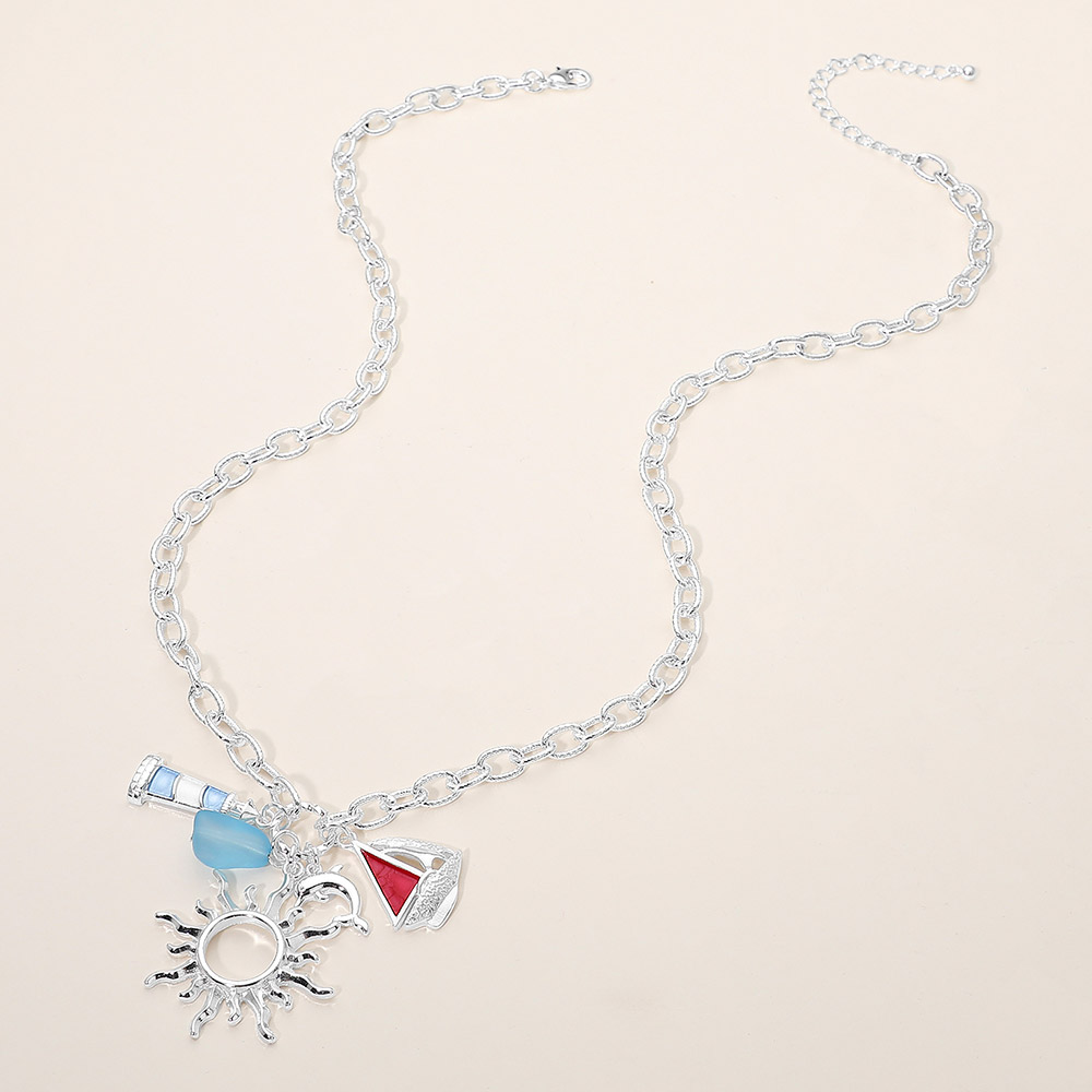 Details • Necklace Size : 24" + 3" L • Pendant Size : 1.5" X 2.1" • Nautical-inspired pendant necklace featuring playful seaside charms that add movement and character to any outfit. Designed for coastal, vacation, and everyday styling, this statement necklace appeals to customers who love ocean themes, travel vibes, and layered charm accessories for casual or resort looks. • Lead and Nickel Compliant