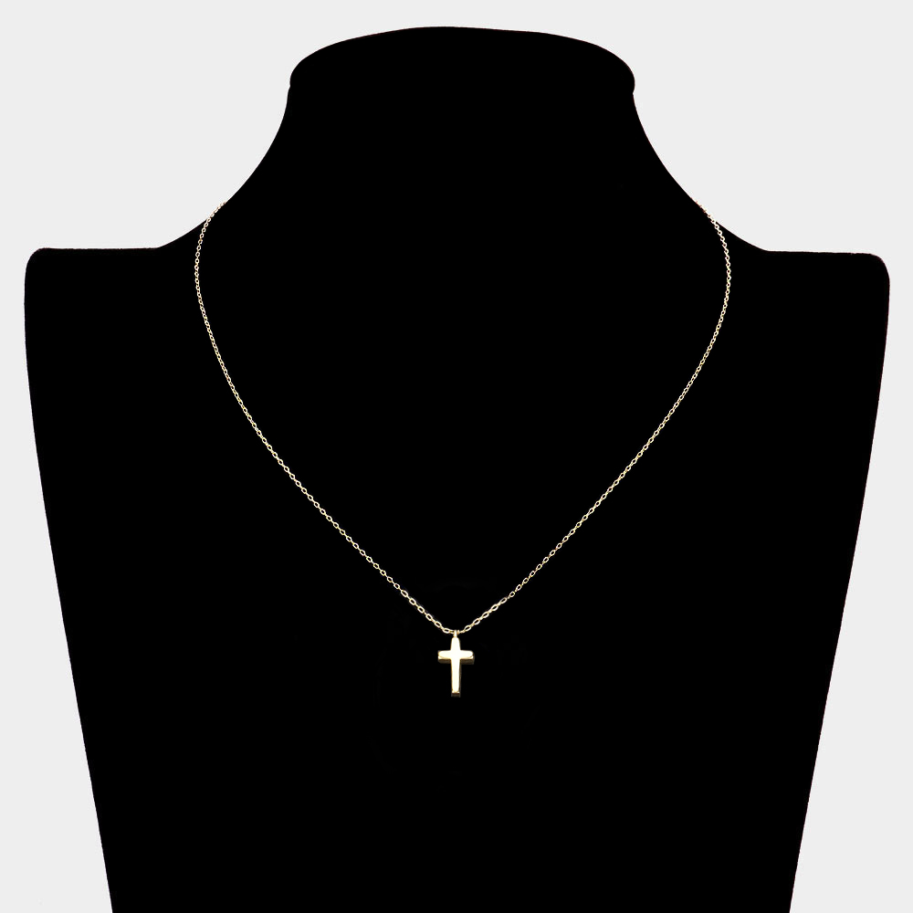 SECRET BOX_Sterling Silver Dipped Dainty Cross Pendant Necklace