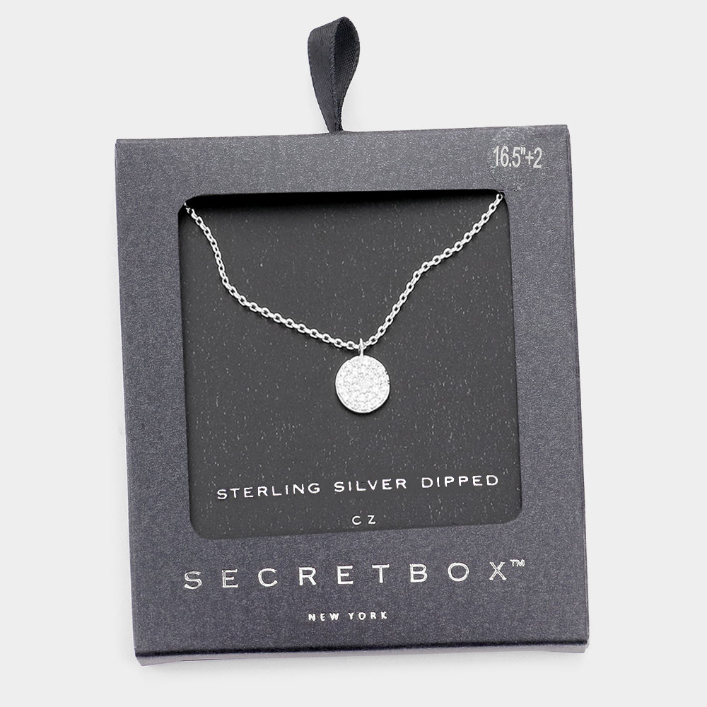 SECRET BOX_14K Gold Dipped CZ Round Pendant Necklace