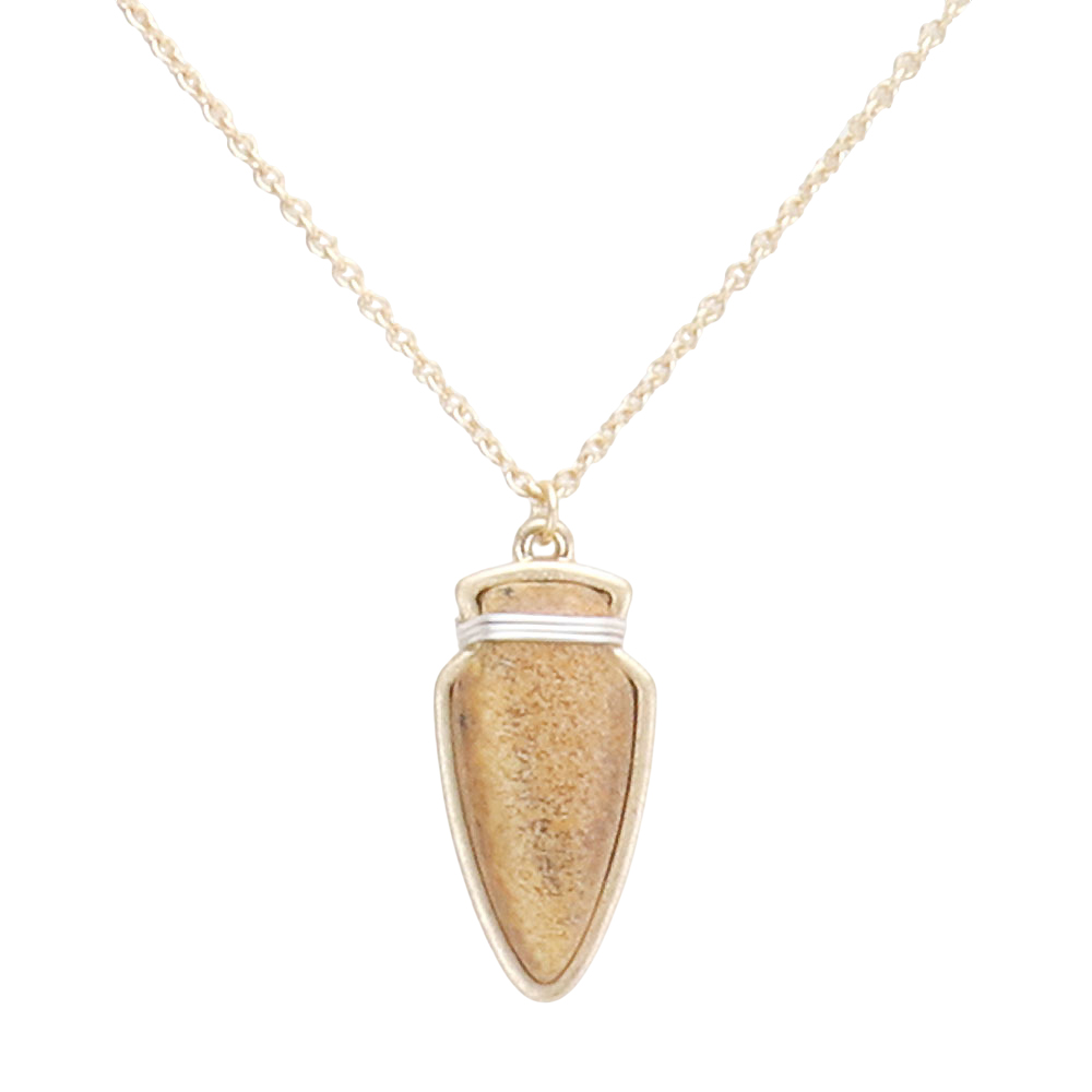 Natural Stone Hammered Metal Charm Stretch Bracelet