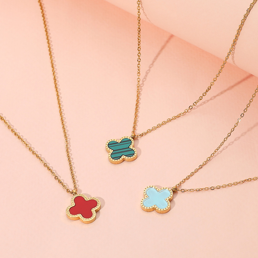 Details • Necklace Size : 16" + 1.5" L • Pendant Size : 0.6" X 0.6" • Elegant quatrefoil pendant necklace featuring a sleek chain and refined charm. A versatile accessory that adds timeless style to any outfit, from casual looks to formal occasions. Perfect as a meaningful gift or a personal staple piece, designed to bring a touch of elegance to your jewelry collection. • Stainless Steel