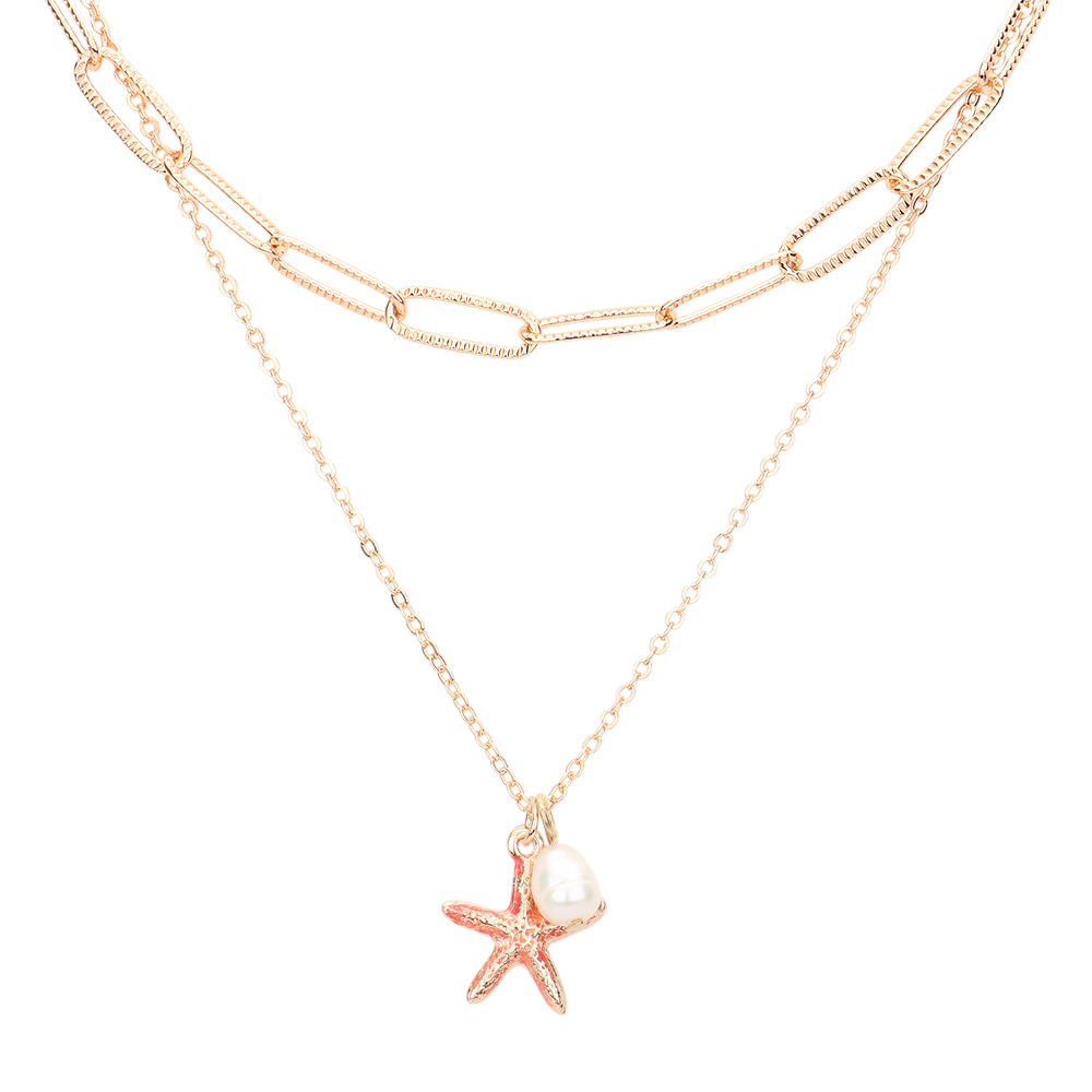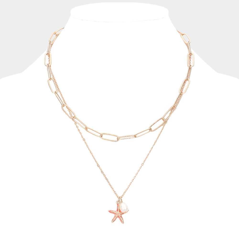 Starfish Freshwater Pearl Pendant Double Layered Necklace
