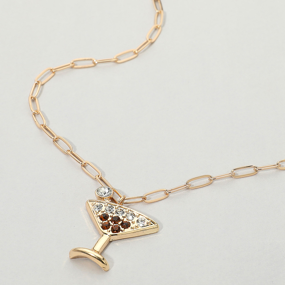 Details • Necklace Size : 16" + 3.5" L • Pendant Size : 1" X 1.25" • Add a touch of sparkle to your look with this crystal martini glass pendant necklace. Featuring shimmering stones and a chic chain design, it’s the perfect playful accessory for nights out, celebrations, or gifting to someone who loves fun, fashion, and a hint of glam. • Lead and Nickel Compliant
