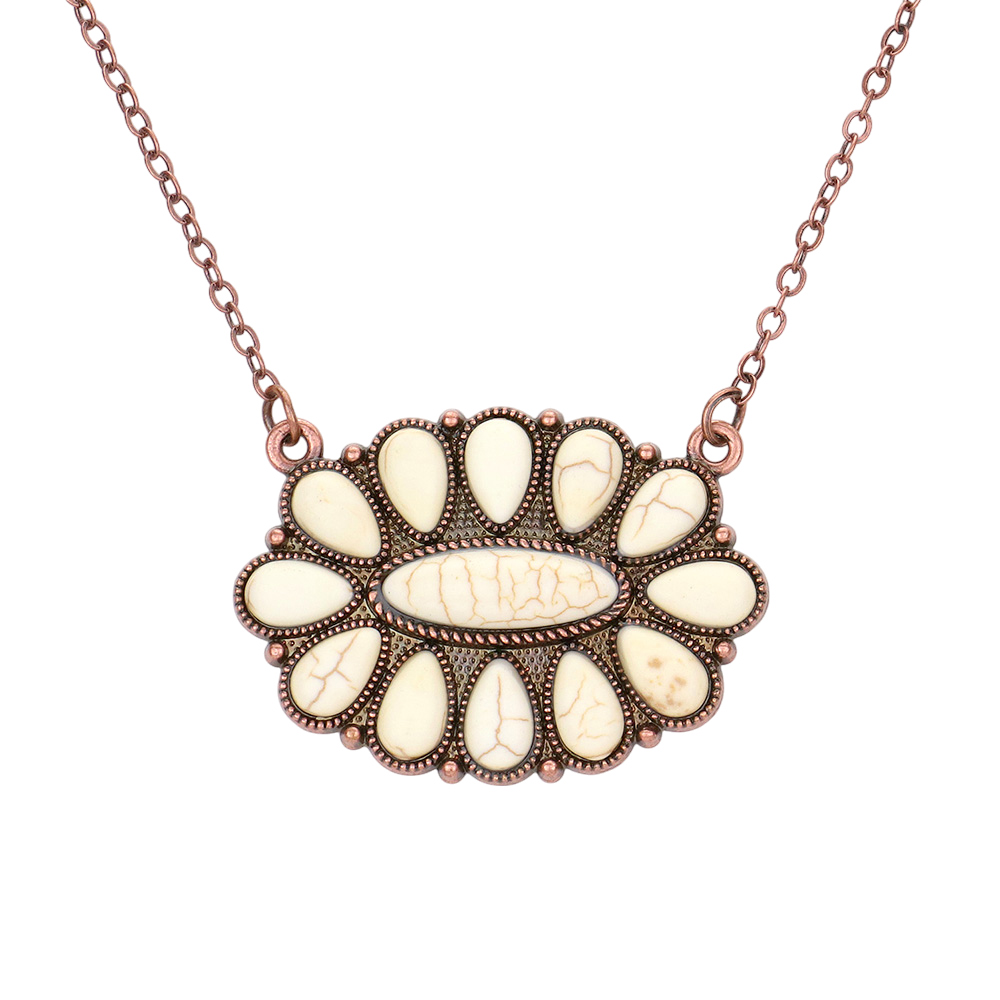 Vintage Floral Stone Accent Oval Medallion Pendant Necklace