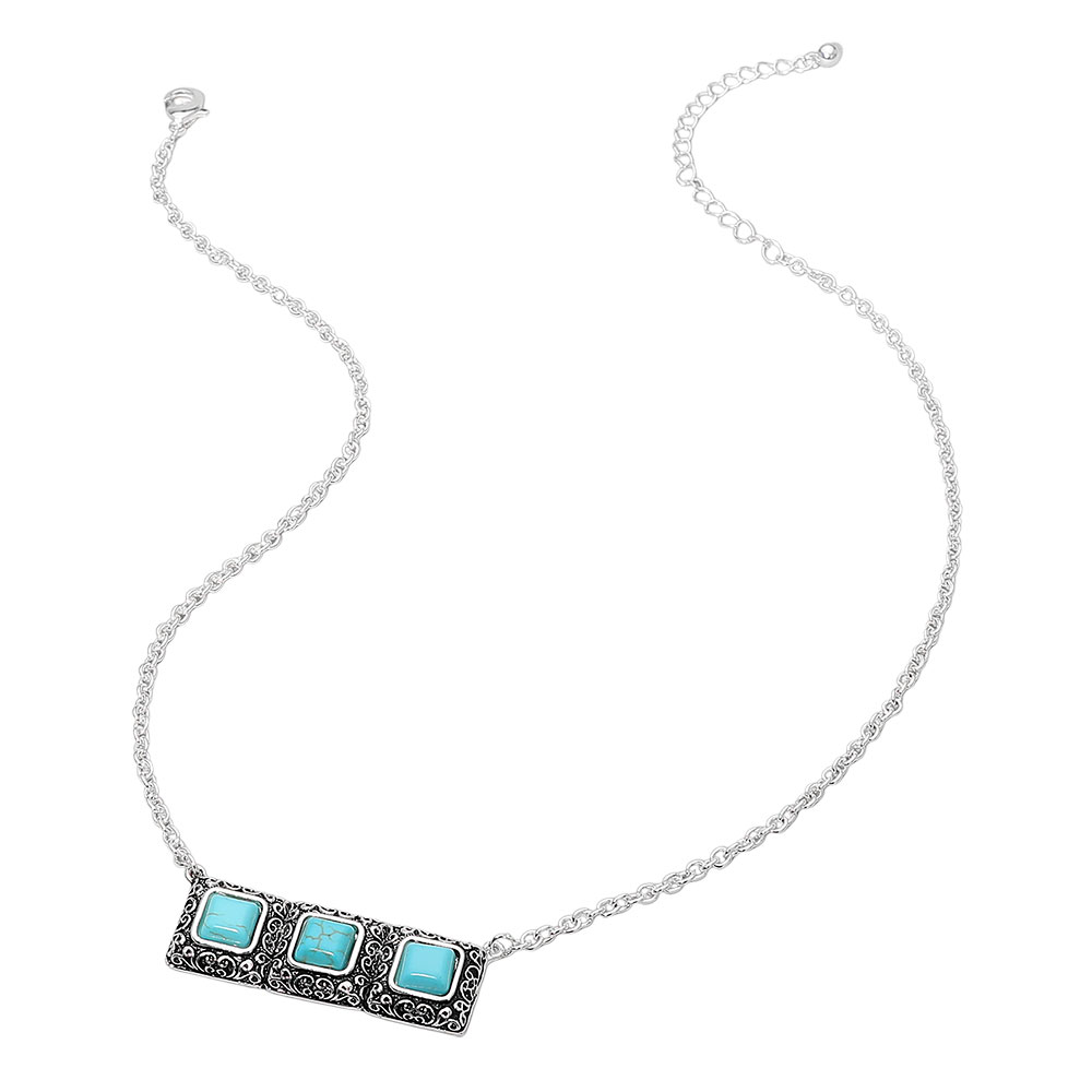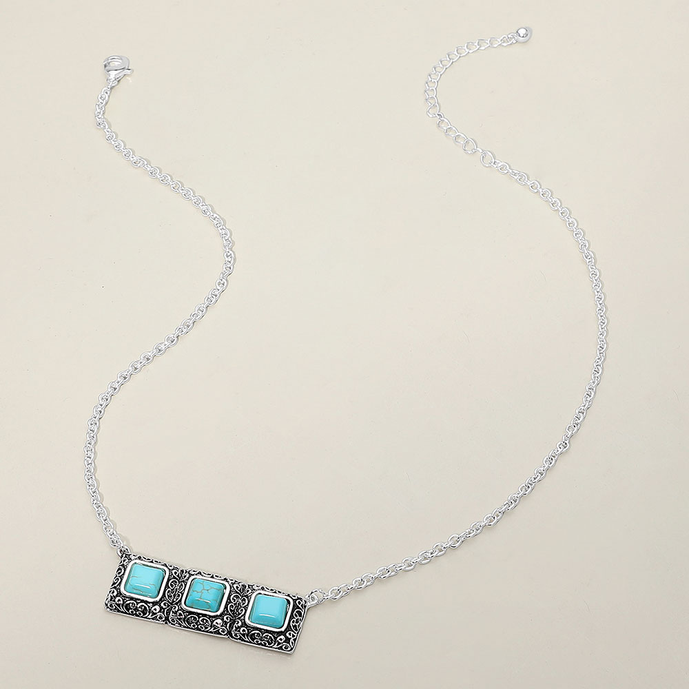 • Add this triple square stone pendant necklace featuring an ornate framed bar design on a sleek chain. A versatile statement piece perfect for everyday styling or special occasions, offering balanced shine, graceful detail, and lightweight comfort.