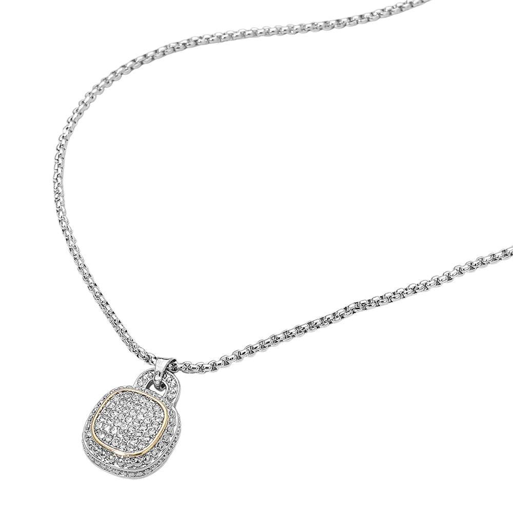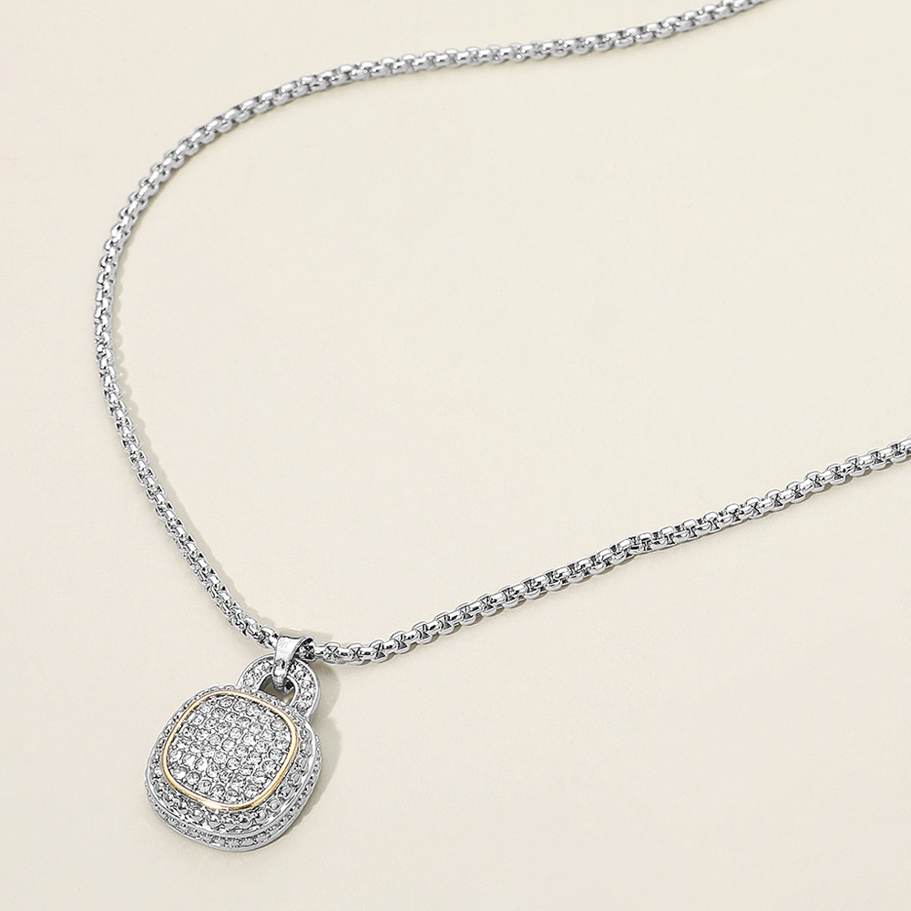 Two Tone Rhinestone Paved Square Pendant Necklace