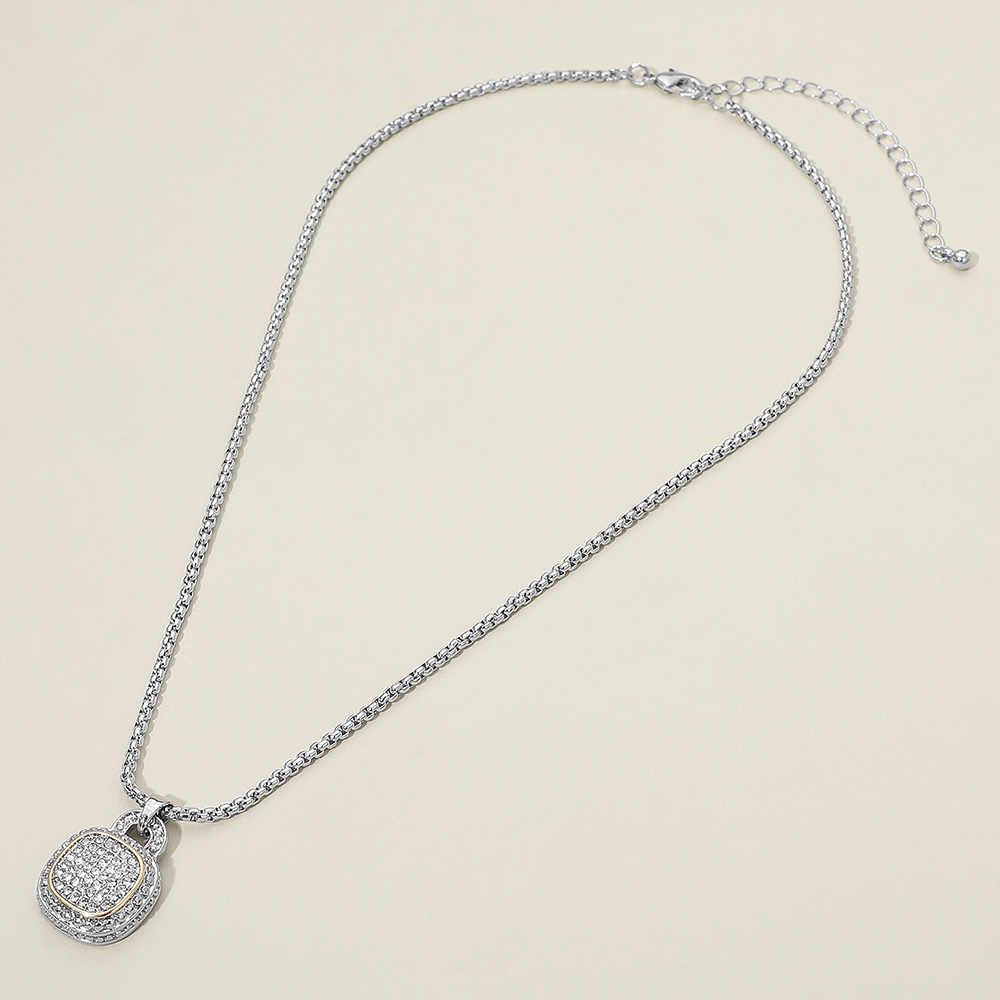 Two Tone Rhinestone Paved Square Pendant Necklace Two Tone Rhinestone Paved Square Pendant Necklace Two Tone Rhinestone Paved Square Pendant Necklace