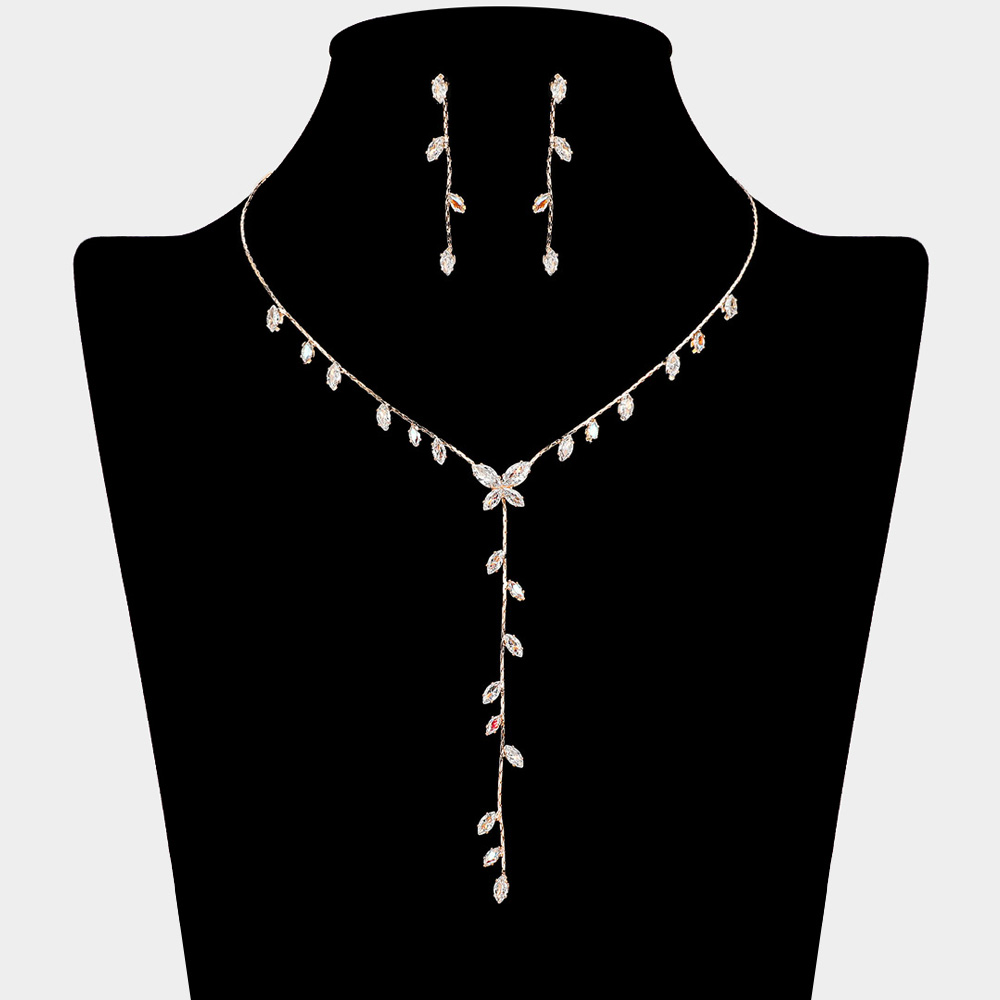 • Elevate your look with this graceful cz marquise stone cluster Leaf Vine Necklace and Earring Set. Featuring a cascading vine design adorned with delicate leaf accents, this elegant ensemble captures natural beauty and timeless sophistication—perfect for weddings, galas, or refined evening occasions.