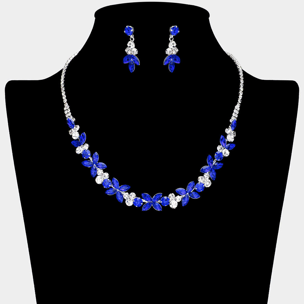 Marquise Round Stone Cluster Embellished Rhinestone Paved Necklace