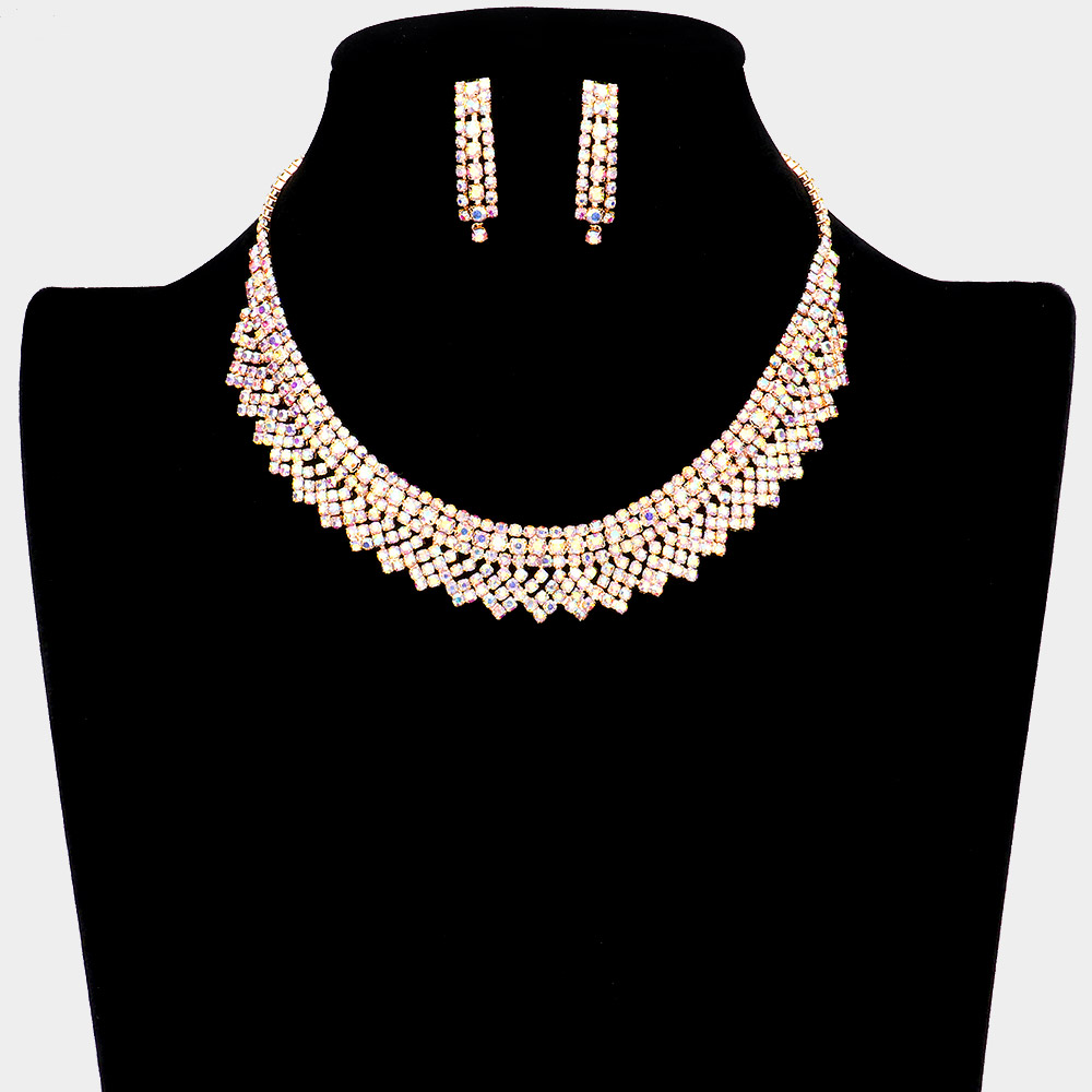 Rhinestone Paved 2-Row Necklace Jewelry Set