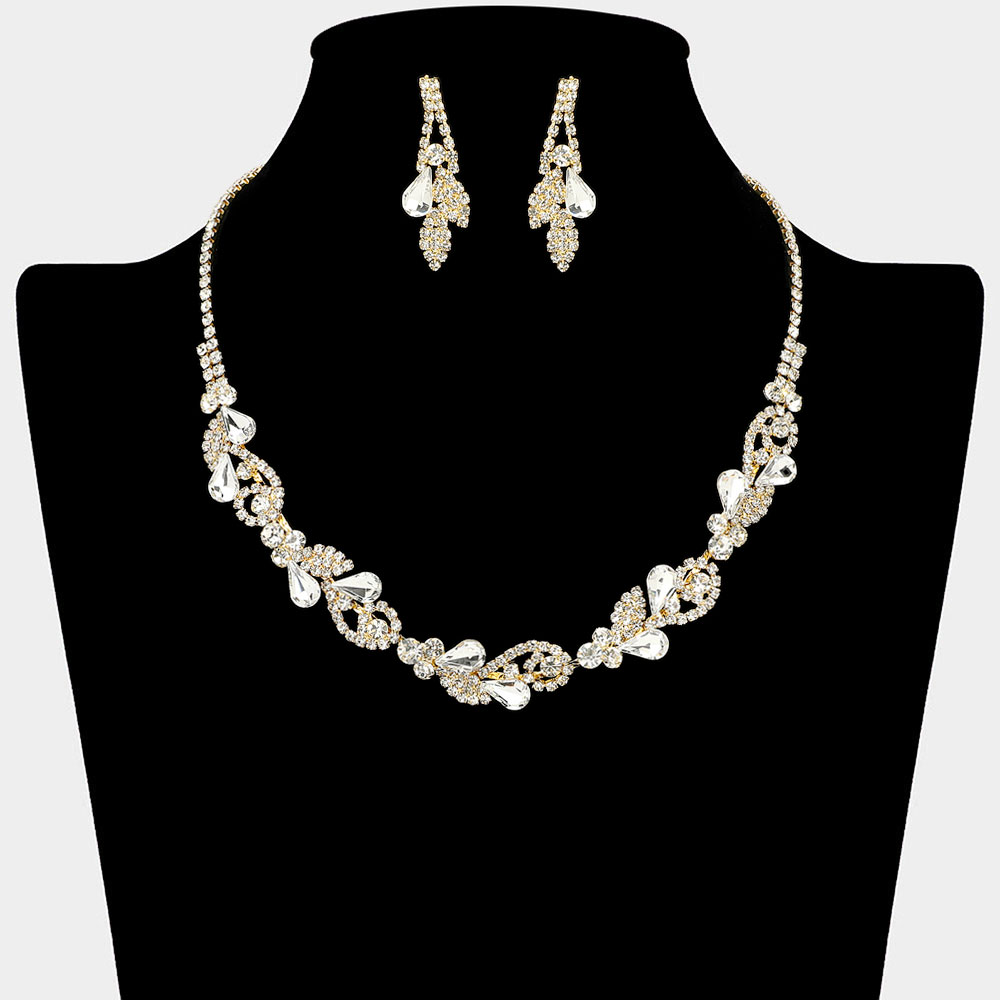 Teardrop Stone Leaf Cluster Vine Statement Evening Necklace