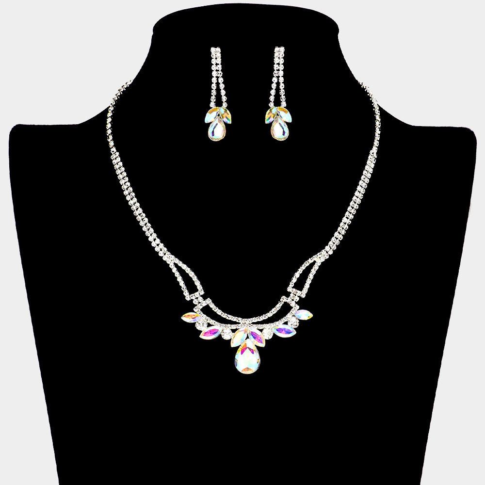 Teardrop Marquise Stone Pointed Rhinestone Paved Necklace Teardrop Marquise Stone Pointed Rhinestone Paved Necklace