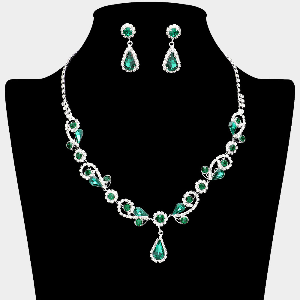 Teardrop Pendant Flower Pointed Rhinestone Paved Necklace