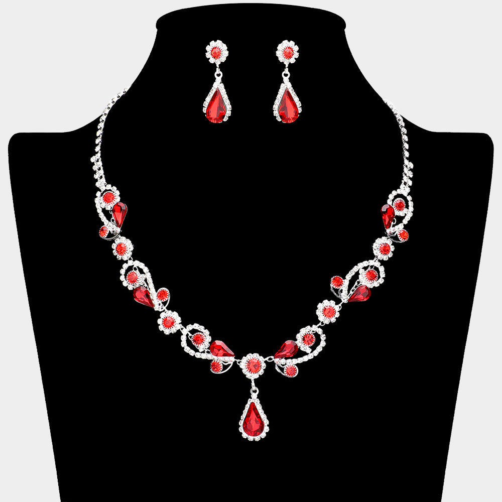 Teardrop Pendant Flower Pointed Rhinestone Paved Necklace