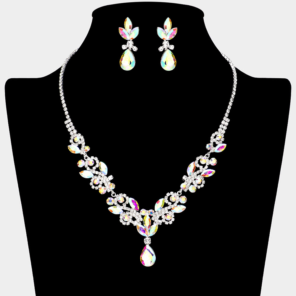 • Graceful floral teardrop rhinestone necklace and earring set featuring sparkling clustered stones with a delicate drop pendant. Ideal for brides, proms, and evening occasions, this jewelry set radiates sophistication and timeless charm for a flawless, glamorous finish.