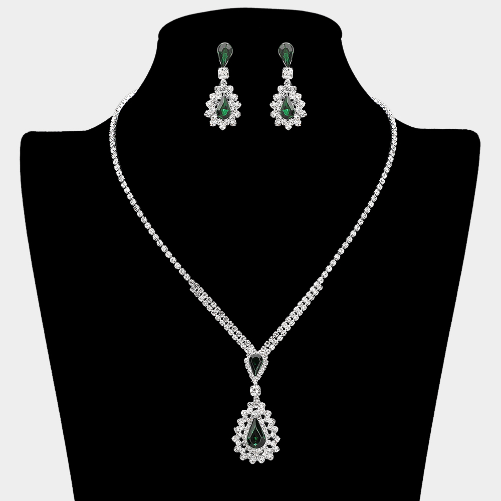 • Elevate special occasion style with this sparkling jewelry set featuring a teardrop pendant and coordinating earrings adorned with radiant rhinestones. Designed to catch the light beautifully, this elegant set adds a refined, glamorous finish to evening looks, weddings, and formal celebrations.