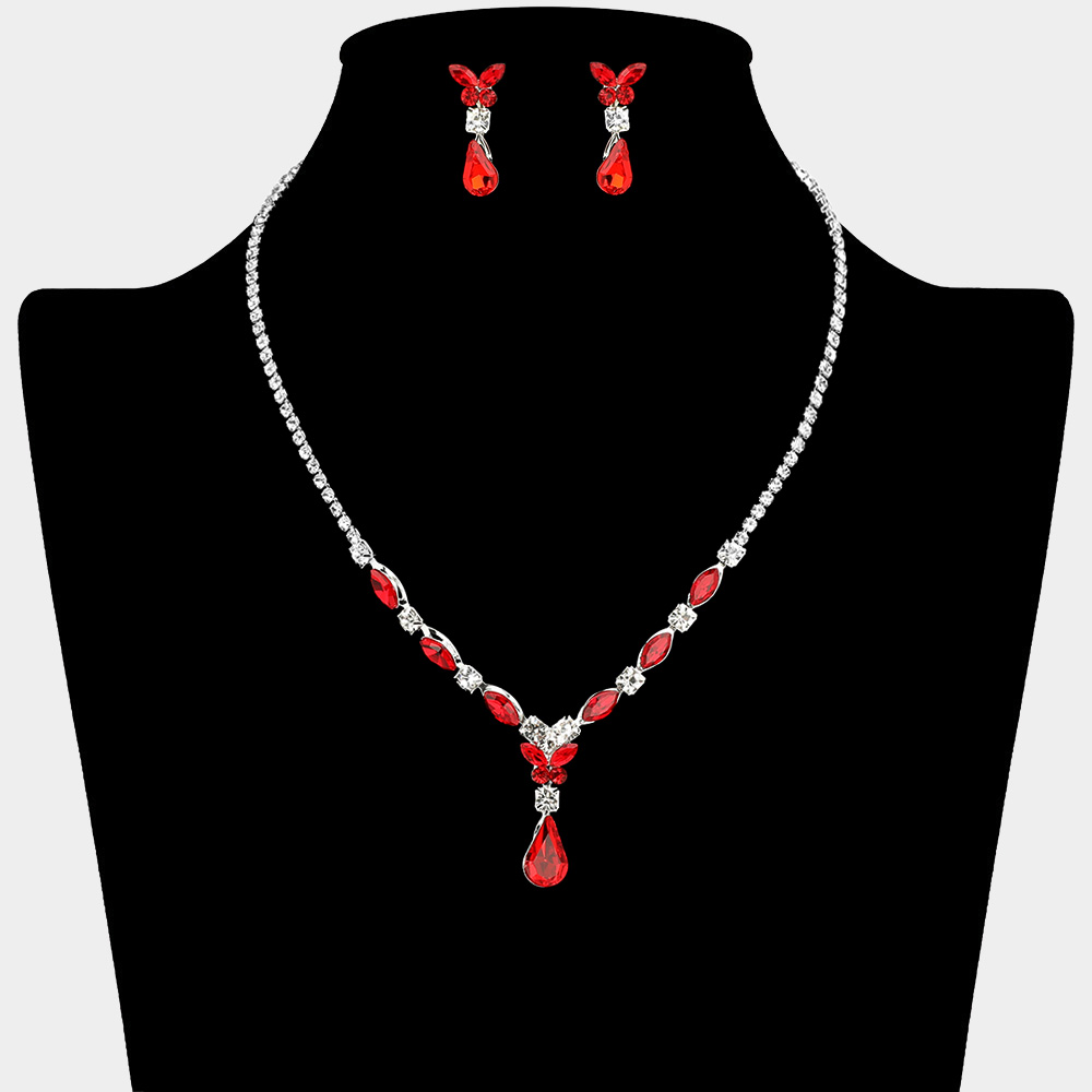 Teardrop Stone Marquise Butterfly Pointed Rhinestone Paved Necklace