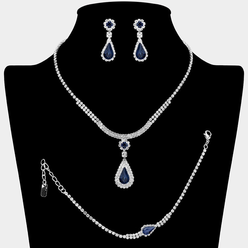 • Enhance your special occasion look with this teardrop crystal necklace, bracelet, and earring set. Featuring a radiant drop pendant and dazzling crystal accents, this timeless jewelry ensemble exudes sophistication, making it perfect for brides, galas, and formal evening events.
