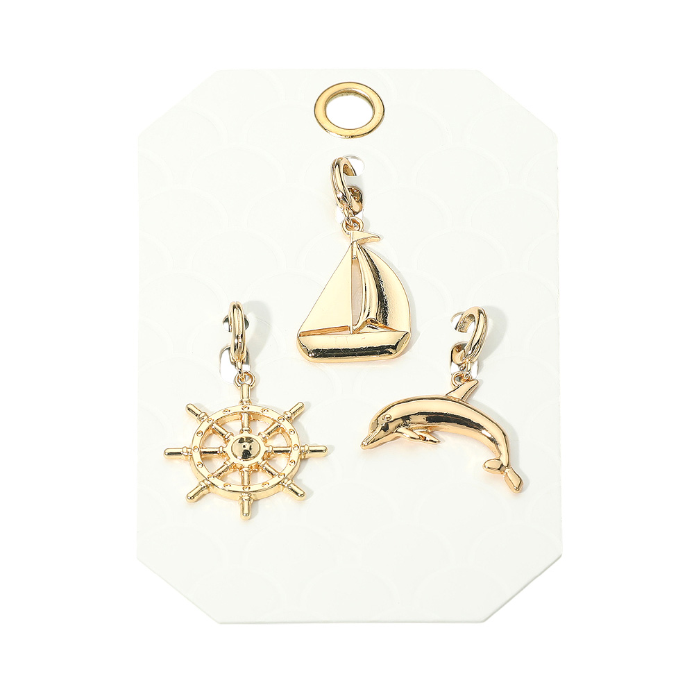 Details • Size : 1.3" L - 1.75" L • Embrace the spirit of the sea with this nautical charm set featuring a ship wheel, sailboat, and dolphin design. Perfect for enhancing bracelets, necklaces, or accessories, these pendants bring a touch of maritime adventure and style to any jewelry collection. • Lead and Nickel Compliant