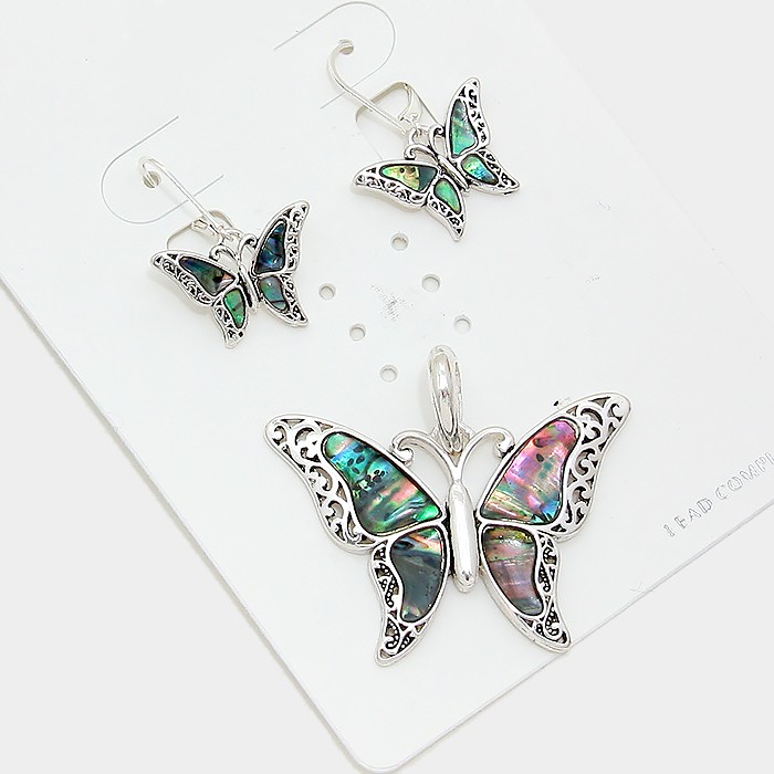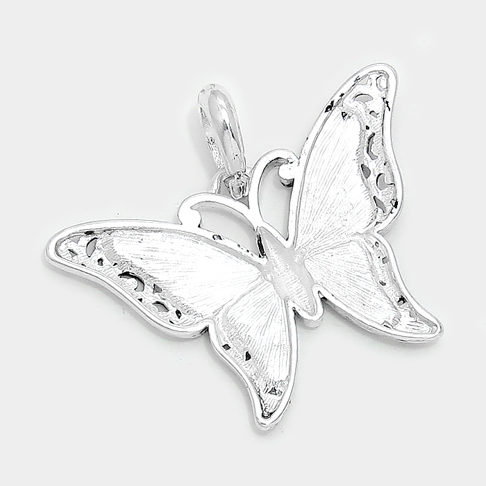 Floral Pattern Enamel Butterfly Pendant Necklace