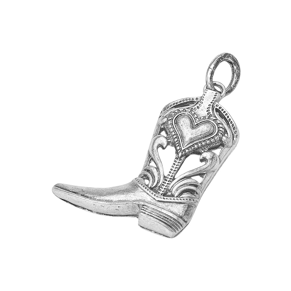 • Add a touch of western flair with this cowboy boot pendant charm, detailed with a heart design for rustic elegance. Ideal for bracelets, necklaces, or keychains, it’s a unique accessory for country lovers and a standout piece for everyday or gifting.