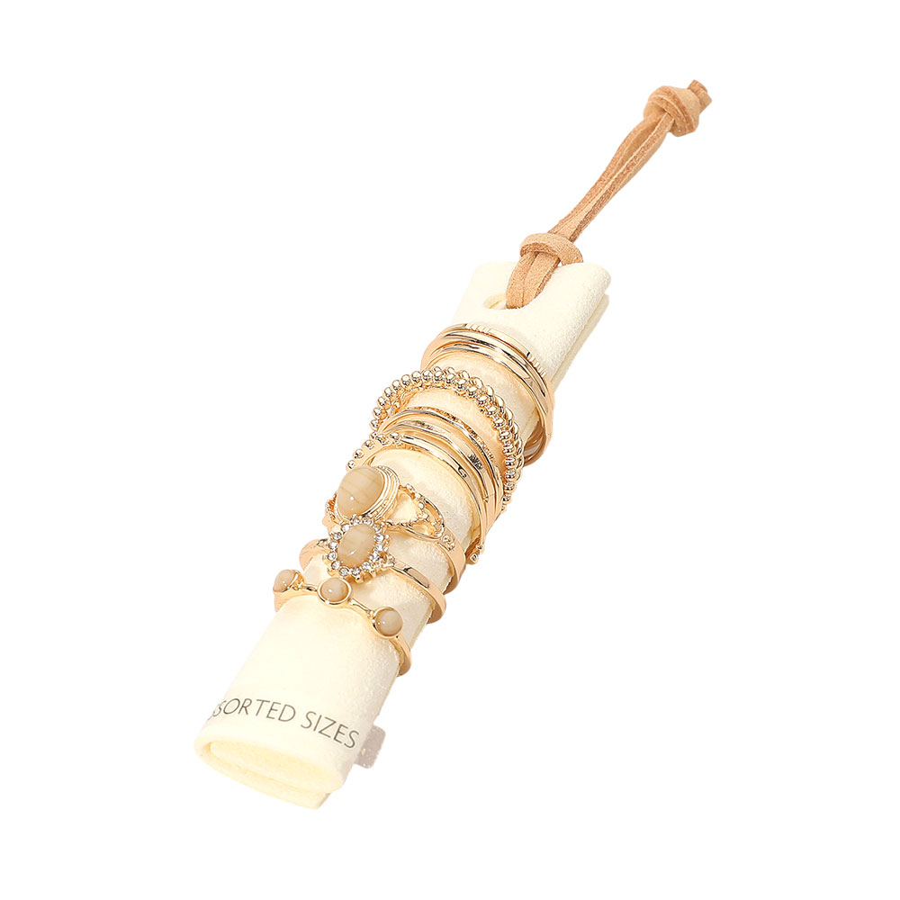 Details • Size : 0.1" - 0.4" H (Assorted Size: 5,6,7,8,9) • Discover this Stacking Ring Set featuring a curated selection of complementary rings designed to be worn together or styled separately. Mix and match to create unique looks for everyday wear or special occasions, delivering versatile elegance and effortless customization to any accessory collection.