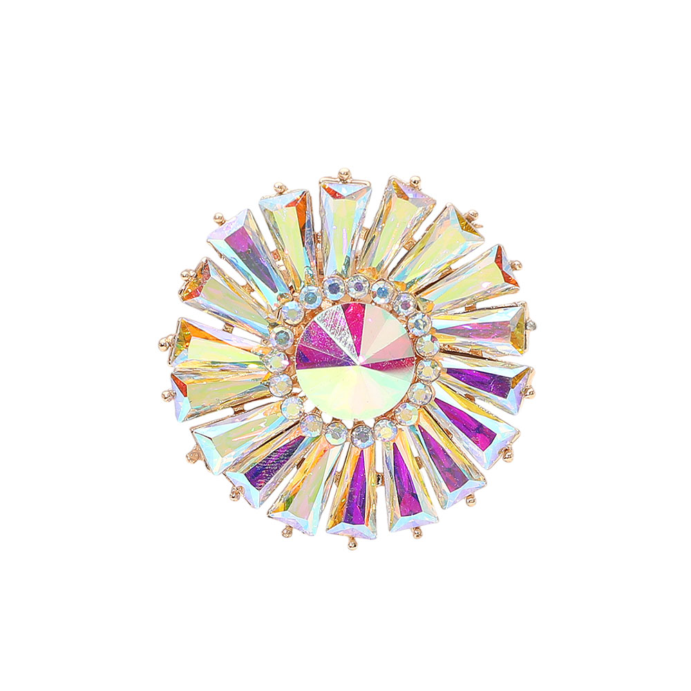 • Bold sunburst statement ring featuring a faceted center and radiant surrounding accents for dramatic sparkle and eye-catching impact. Ideal for parties, special occasions, gifting, or elevating everyday looks with a glamorous focal piece that delivers standout style and confidence.